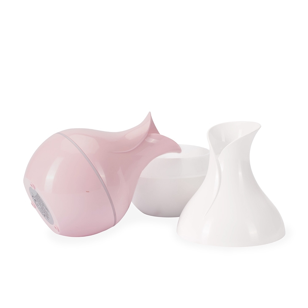 Descrição: Umidificador de ar feito em plástico, com design inspirado em vaso, iluminação LED e reservatório de água com capacidade de até 200ml. Apresenta dois modos de névoa: o contínuo e intermitente. Funciona apenas quando conectado a uma fonte de energia por meio de sua entrada USB-C. Acompanha filtro de algodão e cabo USB-C.